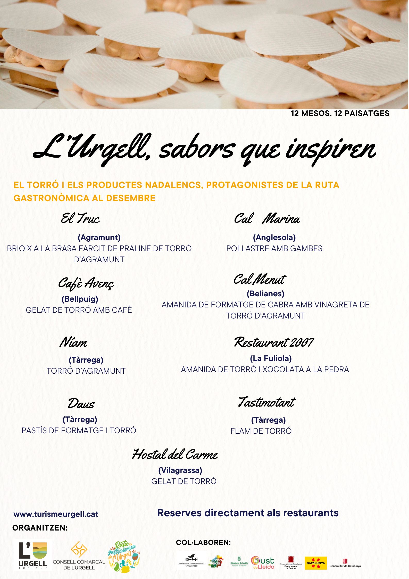 Qualité, proximité et authenticité : trois mots qui définissent la gastronomie de Lleida. Des plats de montagne consistants, marqués par les viandes de bœuf et d’agneau, les saucisses, les fromages et les champignons, à la cuisine des districts de la plaine, qui font la part belle à la viande de porc, aux fruits, aux produits maraîchers et à l’huile d’olive, le territoire offre pendant l’automne une riche palette de spécialités culinaires. Ces plats sont le fruit du savoir-faire populaire, de l’expérience et de la créativité des chefs de Lleida. L’huile d’olive vierge extra, considérée comme l’une des meilleures du monde, ainsi que les excellents vins produits par les 36 domaines de l’AOC Costers del Segre, sont des produits tout aussi essentiels dans ce panorama gastronomique, au point qu’ils ont donné naissance à deux mouvements bien établis : le tourisme de l’huile d’olive ou oléicole et l’œnotourisme, qui attirent chaque année des milliers de visiteurs. Les journées, fêtes et foires gastronomiques consolident le prestige que la région de Lleida a acquis en tant que destination privilégiée pour les amateurs de bonne chère.